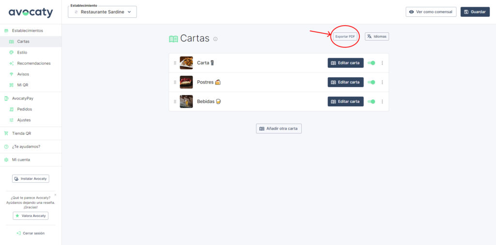 Podrás realizar los cambios que quieras y descargar el PDF actualizado en cualquier idioma en cuestión de segundos. Sin duda, una herramienta que te apoya durante el servicio para los clientes que no son muy amigos del QR.